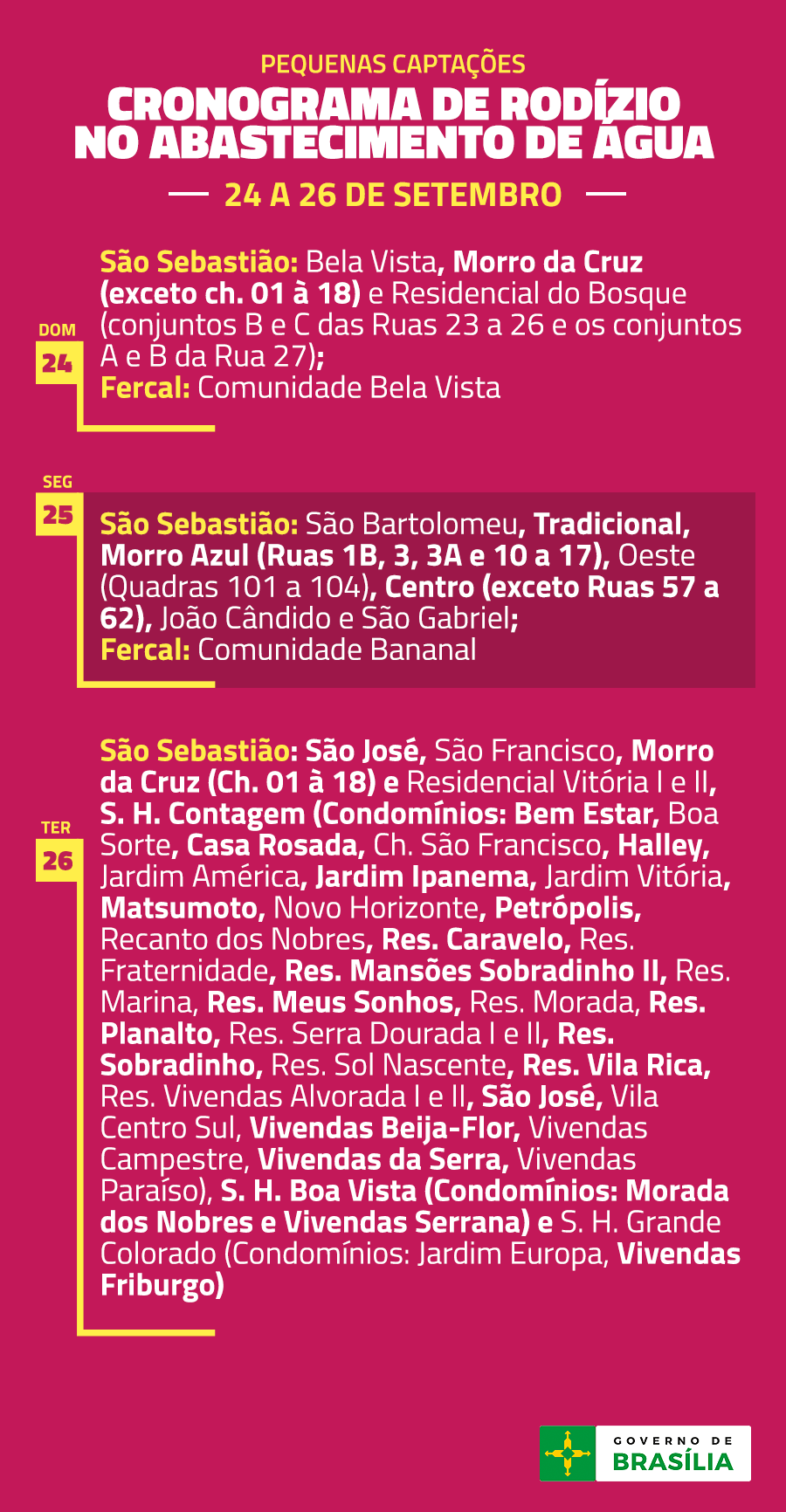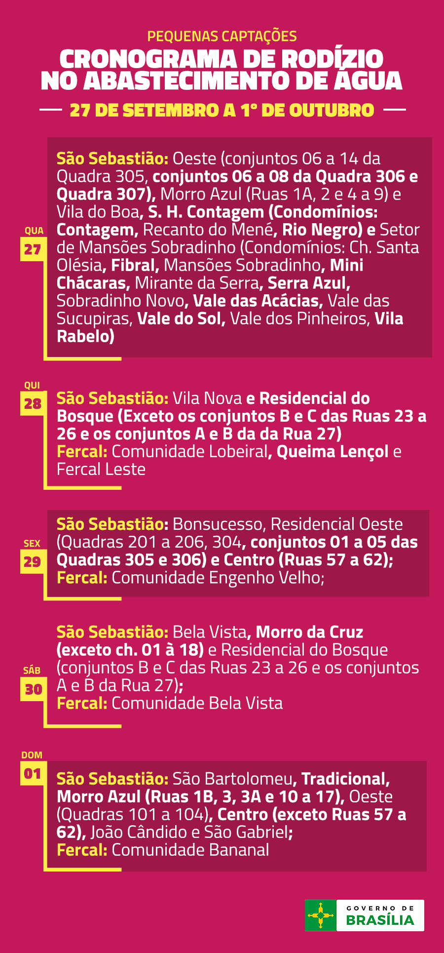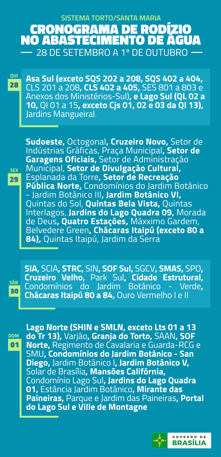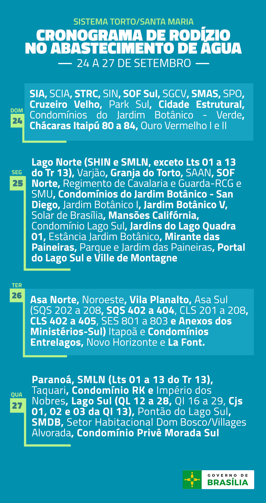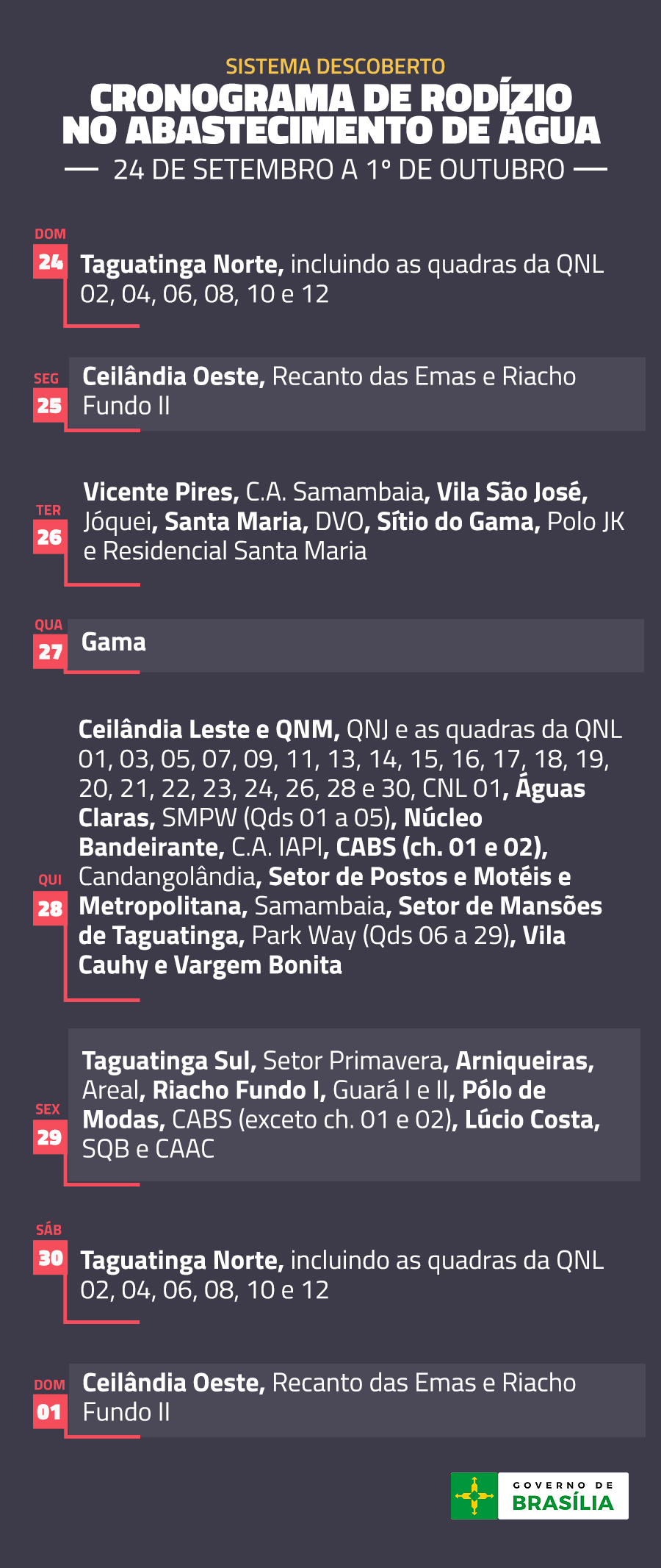 Cronograma de Rodízio – 24 de setembro a 1º de outubro