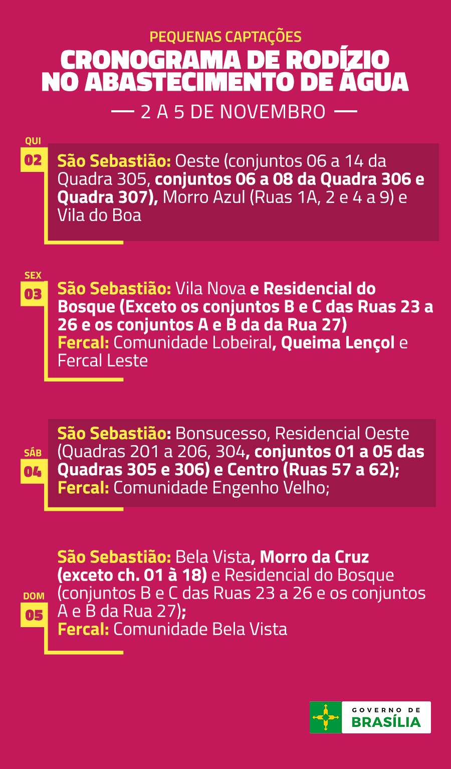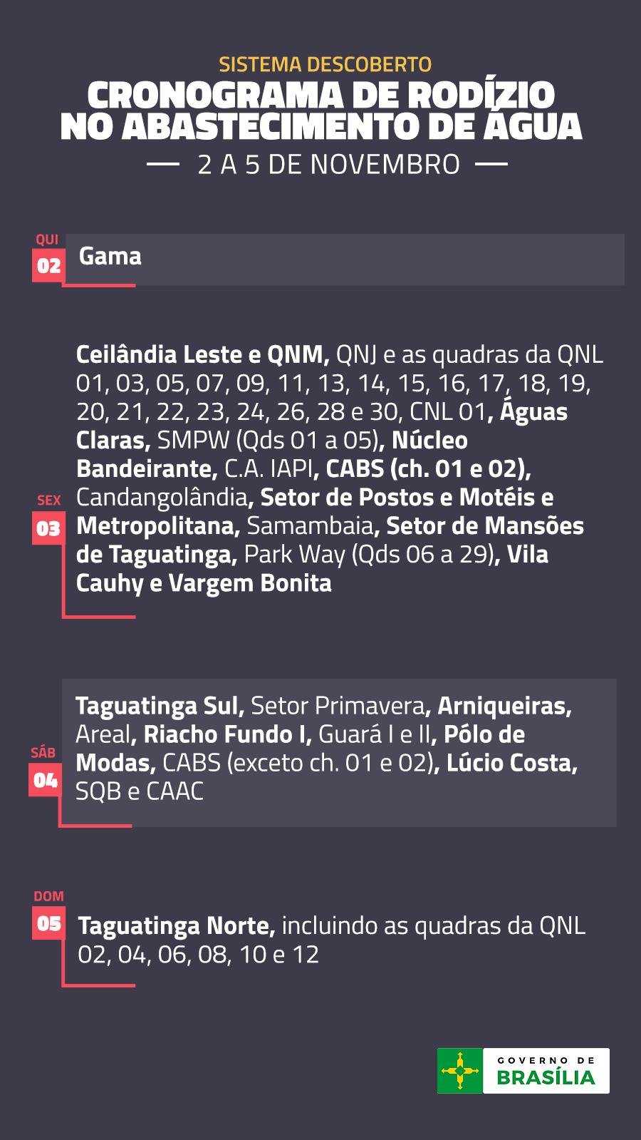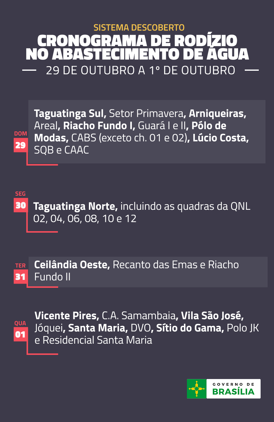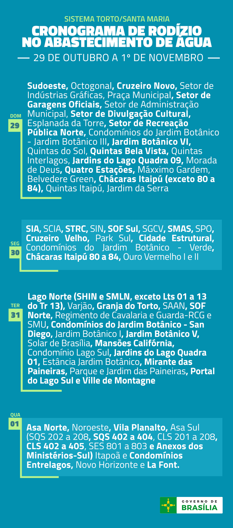 Cronograma de Rodízio – 29 de outubro a 5 de novembro